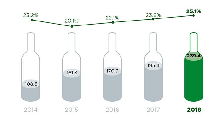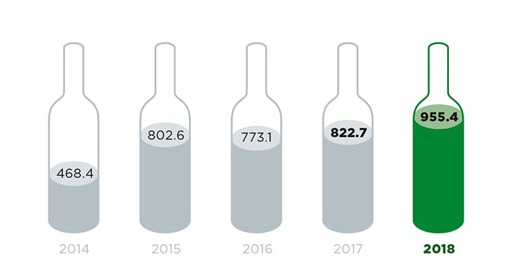 Sales in the year 2018 amounted to EUR 955.4 million, showing an organic growth of 3.8%.